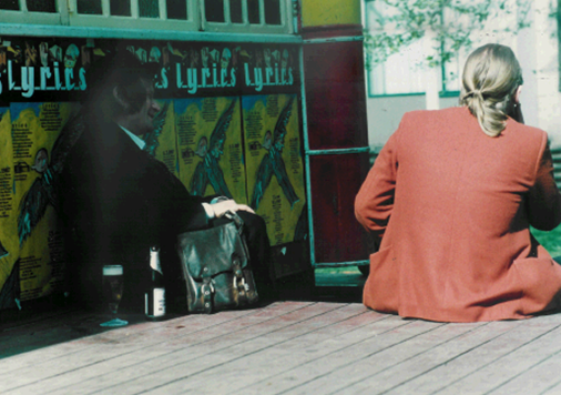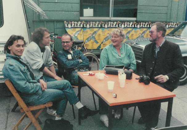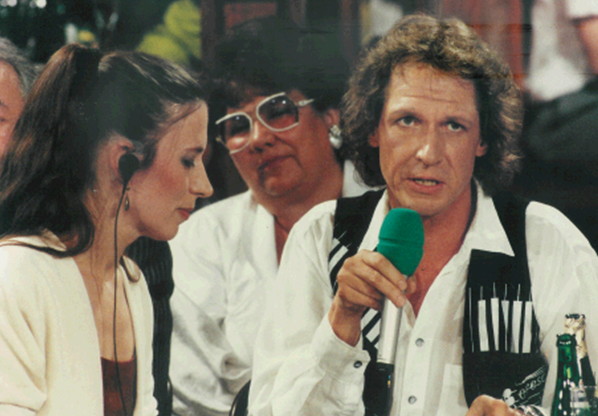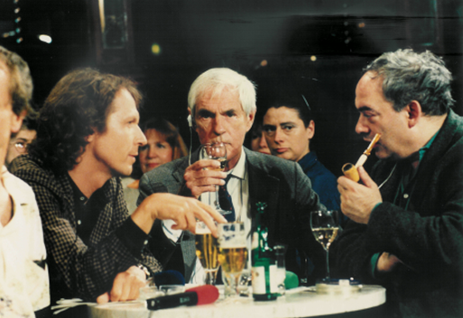 Joachim Dennhardt & Wolf Wondratschek mit der Wirtin der `Deutschen Eiche` aus München
