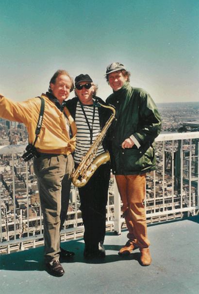 Max Schautzer, Klaus Doldinger und Joachim Dennhardt auf dem Dach des World-Trade-Centers